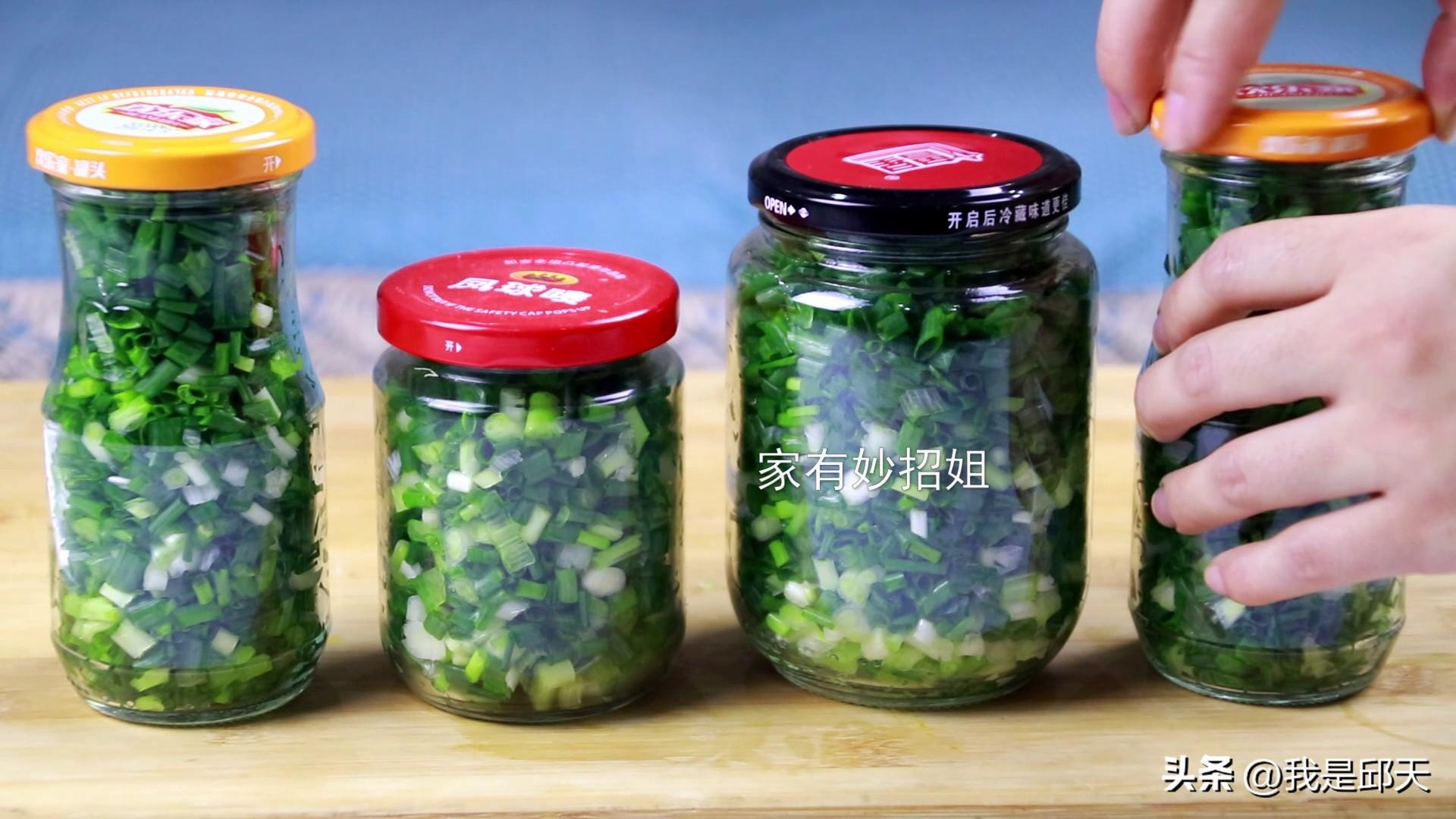 切好,我們再次將香蔥攤開,將殘餘的水分晾乾。之後,我們準備幾個玻璃瓶,把晾乾水分的香蔥裝在瓶子當中,並將瓶蓋擰緊。接下來直接放進冰箱的冷凍室冷凍保存就可以了。