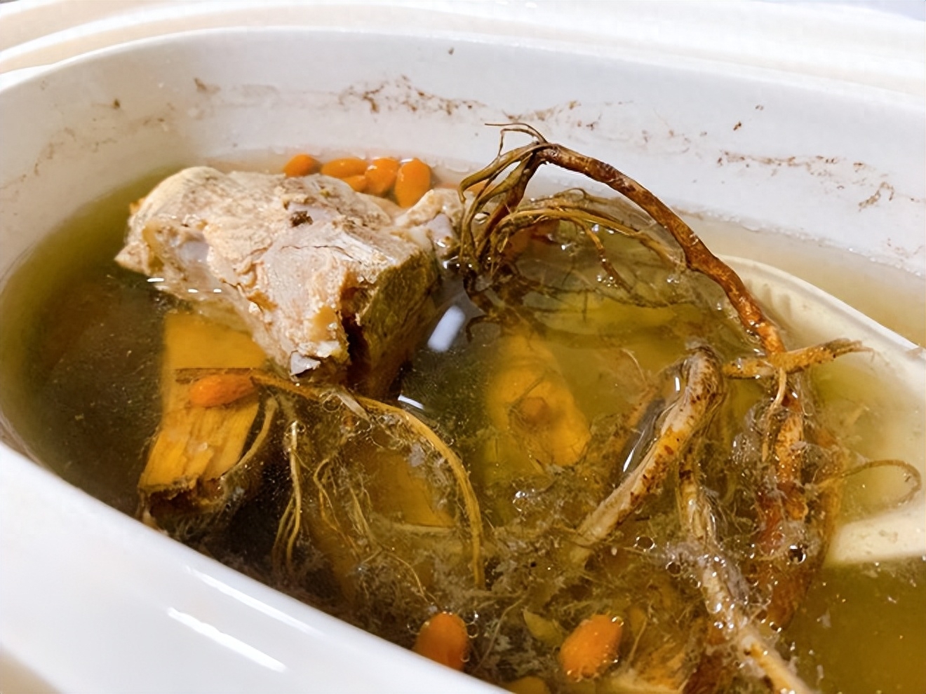 3、焯水好了后,直接倒入砂鍋中,加入適量的料酒和薑片,倒入沒過排骨的清水,蓋上蓋子,開啟中大火煮制第一次沸騰后,我們就要放入,具有功效的五指毛桃啦,毛桃我們切成段,放入排骨中,加入紅棗和枸杞,蓋上蓋子,開啟中小火慢慢熬制上1小時左右,我們這道健脾潤肺,去濕氣的排骨五指毛桃湯就完成啦,清甜又營養,看完都趕緊試一試吧!
