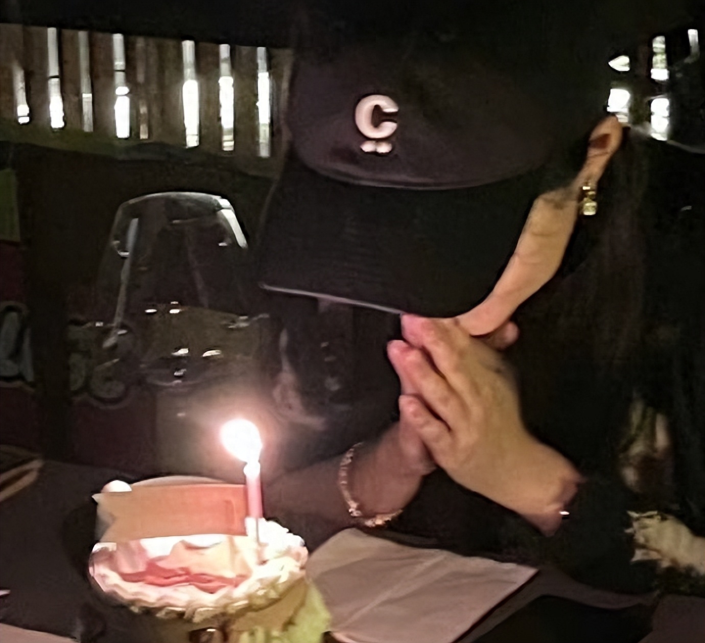 在昏暗的背景下,關曉彤戴著壽星帽,對著3個蛋糕許願。她素顏出鏡,皮膚光滑到似乎會反光,關曉彤雙手合十笑得十分燦爛,顯然也沉浸在生日的喜悅之中。