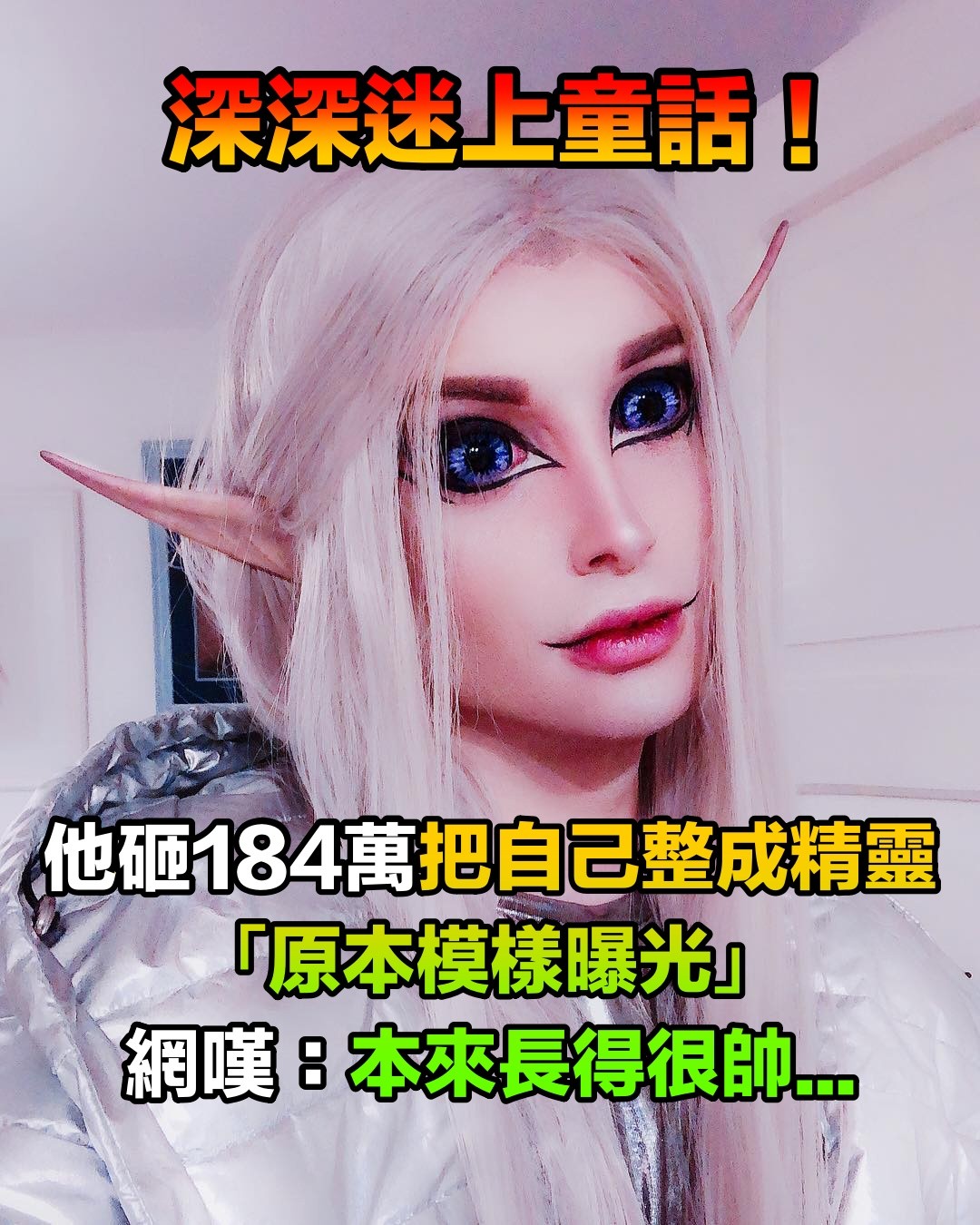 他迷上童話「把自己整成精靈」!狠砸184萬「連耳朵都變尖的」原本模樣曝光:以前就很帥了