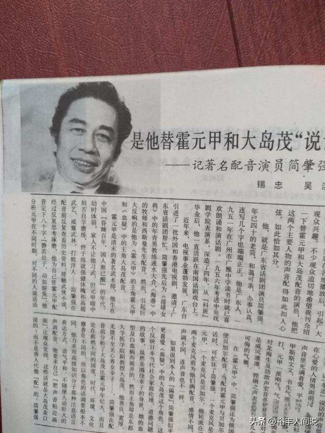 可能很多人對這個名字並不是很熟悉,但他的聲音絕對是童年的記憶。香港經典劇集《大俠霍元甲》,其中黃元申扮演的霍元甲幾乎是無人能比,而他的配音就是簡肇強。