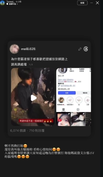 新北驚傳校園霸凌!建中生遭「逼跪輪流給耳光」 兇手囂張一晚「最後卻縮了」 Elmo 2025-11-14 檢舉 圖片來源:Threads這番極度失敗的道歉發言反而引來更多批評。網友紛紛嘲諷:「到底是讓你壓力大什麼?被你威脅的版主應該壓力更大吧?」、「嗆人的時候不是很囂張嗎?現在裝可憐?」、「這什麼垃圾道歉文,根本沒有悔意」、「先嗆人再來哭壓力大,邏輯死去哪了」、「建議直接送少年法庭,讓法官給你壓力」。圖片來源:Threads太扯了吧...資料來源:《造咖》 Advertisements 回首頁 2/2 Advertisements 猜你會喜歡 15歲童星遭霸凌輕生!她傷重還原狀況「電纜線救她一命」 淚崩「想不開不止一次」:該怎麼面對同學 編輯精選推薦 More + 婚變尪落跑!單親媽「獨扛千萬債養孩」到處躲黑道 「一開口驚艷眾人」熬成台灣歌后 15歲兒「睡夢中離世」!本土女星「送愛子火化」求做1事 「PO照圓滿了」:媽媽和你永不分開 65歲男星獨居暴斃!大咖女星放下恩怨「送前夫最後一程」 昔遭動手6年嘆「死者為大」 功德圓滿了!台語歌后「悲曝他離世」享壽95歲 淚喊:去當快樂的神仙吧... 85歲失智父身亡!林葉亭突宣布「皈依佛門」 遇大師「開示一番話」忍不住淚崩 曾比江蕙紅!台語歌后「爆未婚生子」遭指指點點 「2次手術害癱瘓」72歲近況曝 本土劇女星生了!7年前凍卵「終於來到我身邊」 歌手尪嗨喊:生個足球隊 快訊/才過1年!賴佩霞驚傳「他不幸身亡」急飛美國奔喪 臨終前「女兒陪在身旁」 24歲兒失明!于美人爆「他在飯店掃廁所」維生 不盼紅包只求「別再花我的錢」 台灣大咖病逝「享壽83歲」!周遊告別式痛哭「認婚內出軌」:兒子很恨我... 22歲愛女病逝!資深男星「走不出喪女痛」留白長髮現身 掛骨灰項鍊「代女做1事」惹淚 趕在40歲前閃婚!八點檔女星「宣布嫁給他」 尪驚人身分曝「媒人是柯叔元」 男子突發腦出血走了!醫生怒斥:「吃降壓藥時候,沒有注意這3點!」 最新/賈靜雯深夜慟曝「她已離世」 淚PO合照喊:真的好愛你... 慘遭飛車拖行!八點檔男星「臉全磨爛」驚悚畫面曝 目睹女星「崩潰嚇哭」頻發抖 快養不起小孩!本土男星「開計程車、斜槓房仲」 突宣布「離開台灣」:演藝圈沒工作 快訊/曾叱吒政壇!蔡英文「最信任的她過世」 死訊被證實「已舉辦告別式」 台語歌后慟別摯愛!告別式上認「早隱瞞病情」 道歉哭喊:原諒我簽放棄急救 相差18歲!58歲康康自爆「與老婆分房12年」驚呆眾人 提到沈玉琳「坦言罹同1病」:必須警惕... 台海若開戰「哪縣市最安全?」 網狂推2地:「打都不會打」 佛門前不清淨!中台禪寺爆醜聞「下藥昏迷師弟」逞獸慾8次 「黃安妹妹也在內」廟方回應了 全遣送中國!台灣873名詐騙犯慘了「外交部出面回應」 空窗多年!68歲陳美鳳突羞認「身邊有個他」 40年前就認識「遭男方母親拆散」 以為只是小感冒!本土女星悲痛證實「他併發肺炎過世」 一度淚灑現場「後悔同意插管」 離婚11年!洪榮宏愛女結婚「終破冰前妻」 「2爸爸牽她進場」催淚畫面曝