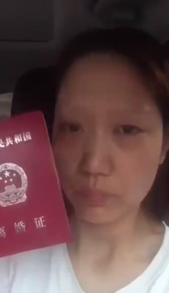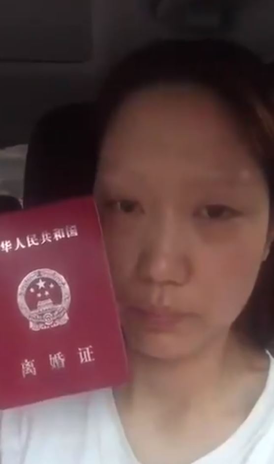 一開始這位女子對著鏡頭曬出離婚證,表情看起來非常哀怨,感覺她因為離婚這件事感到很不甘心啊!
