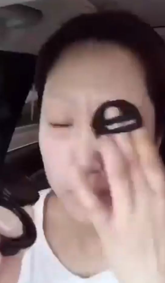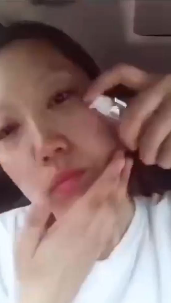 再來她拿出氣墊粉餅要來替自己上上底妝,這時候大家一定會發現,剛開始有著黯沉皮膚的她,竟然一下子白了好幾個色號。