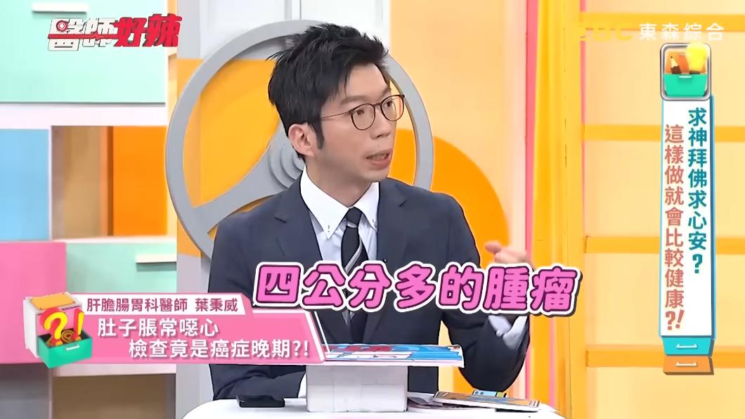 「她的腸子蠕動非常高頻,一般是比較低頻的!」看到婦人的肚子異常增大,葉秉威首先認為,應是「腸阻塞」造成,做檢查之後卻驚覺,婦人的大腸小腸交接口,已經長了將近4公分的腫瘤,直接把小腸塞住,導致水分和氣體無法通過,難怪病患的肚子會莫名變大。