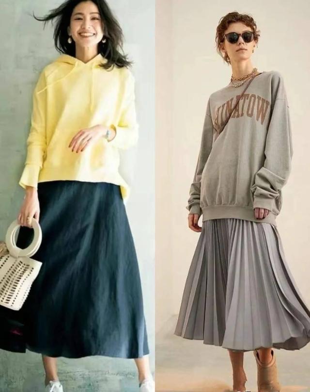 衛衣設計本身就偏寬鬆,尤其是對於我們這些身材已經不如年輕時的中年女性來說,一不小心就穿出了「大媽感」。衛衣那種松垮的版型會讓我們上半身顯得格外臃腫,還會讓胳膊看起來粗壯,簡直是暴露年齡的「照妖鏡」!