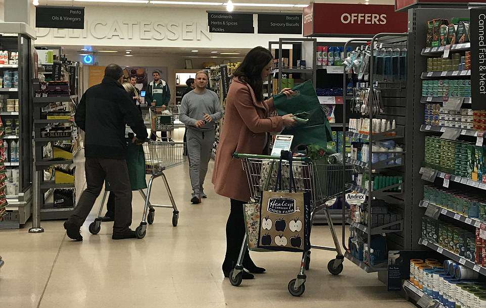 民眾也拍下凱特王妃正在採購的樣子,只見她身穿著粉色長外套, 下半身則是搭配黑色緊身褲及短靴,就算已經進入待產階段,身材還是十分纖細,而之後她更使用快速結帳系統進行結帳動作。