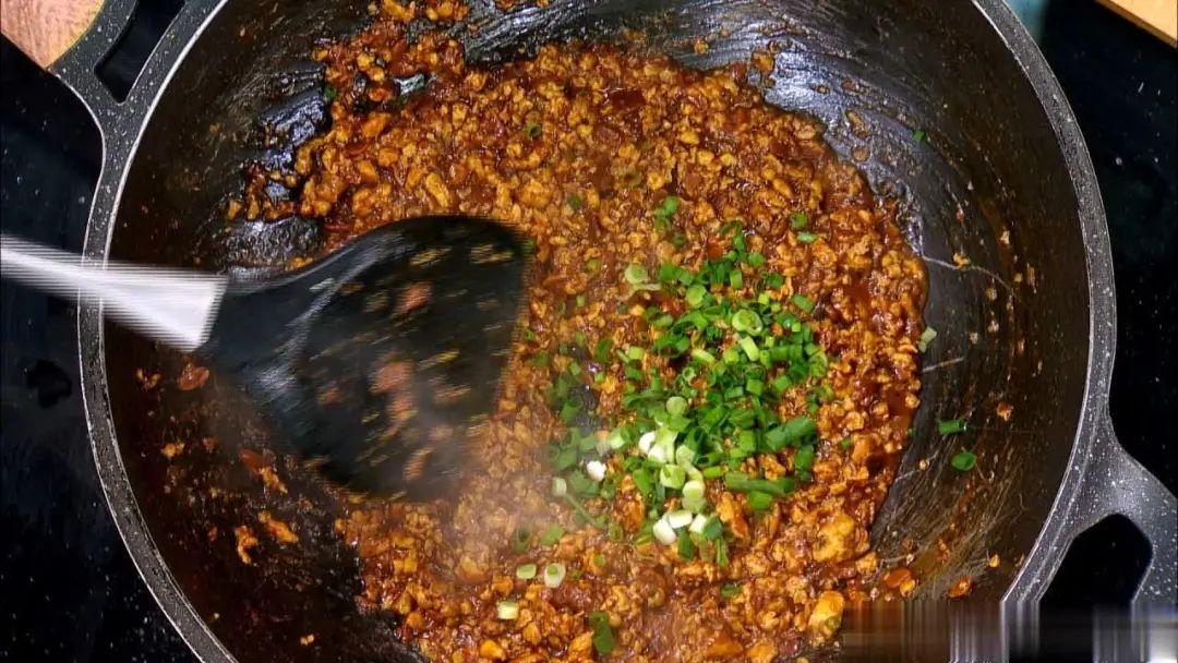 3、將蔥薑、八角倒入油鍋中,煎制金黃出香。然後倒入雞蛋液炒熟,放入適量的黃豆醬,煸炒出香味,加水收汁。