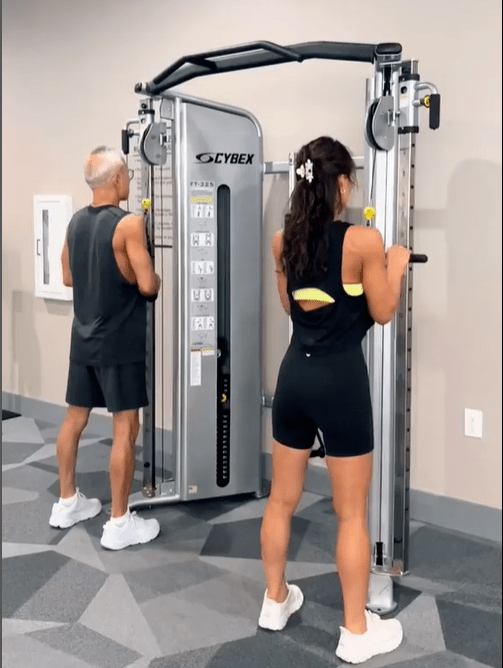 白天各忙各的,下班後換上情侶裝去健身房約會~先來有氧熱身,避免損傷。