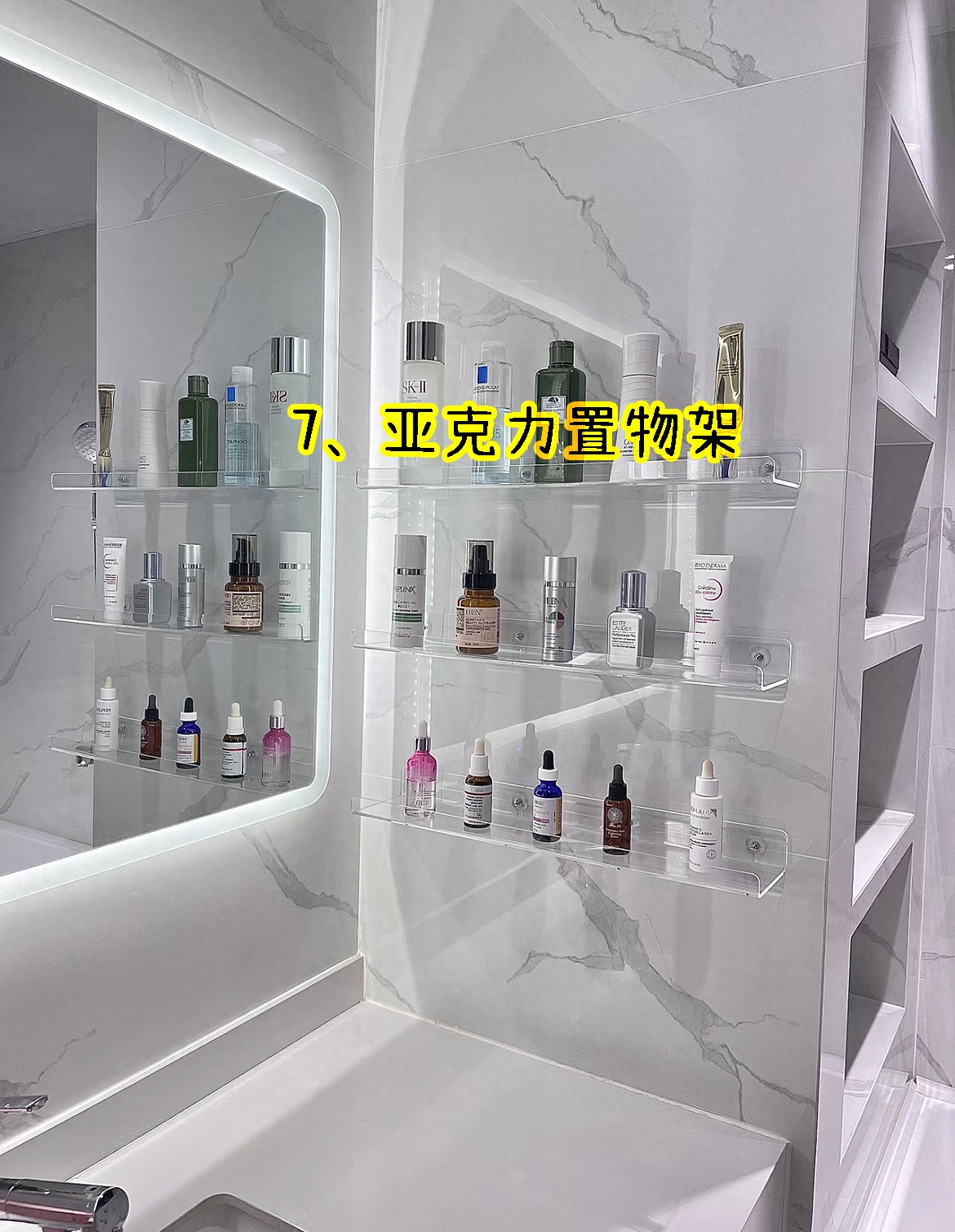 洗手台牆面的收納置物架數不勝數,但要說顏值最高、實用性最強的,肯定非亞克力置物架莫屬了。