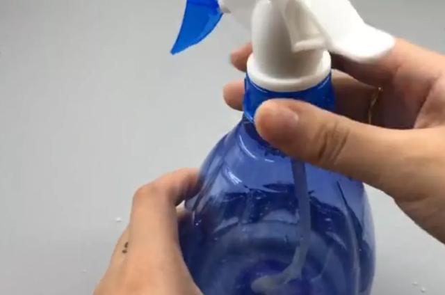 將搖晃好的鹽水噴到廁所的水龍頭上