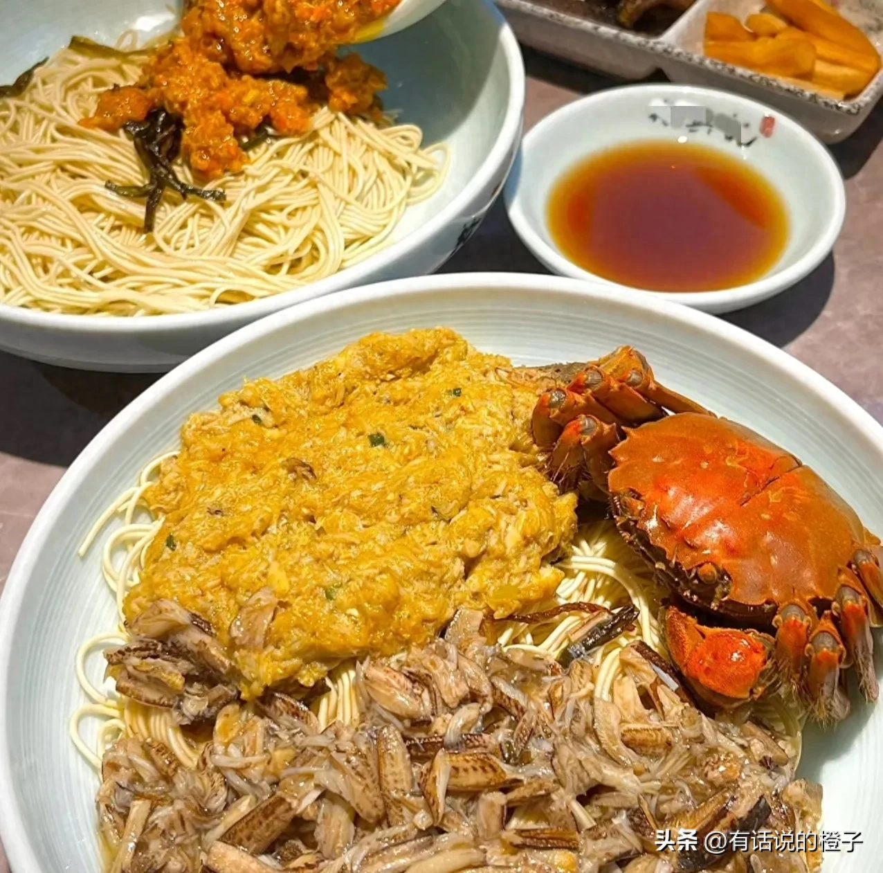 我家樓下新開了一家麵館,招牌面是蟹黃面,一份價格是1500元。