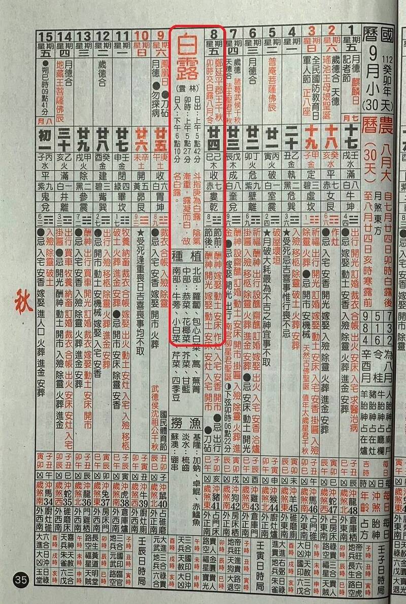 而明天是農曆7月遇到的第2個節氣「白露」,民間也流傳著許多禁忌,廖大乙指出,從白露到中秋節期間,「劉姓」和「張姓」2姓氏要注意,有「2件事」等過了中秋再做比較好,廖大乙指出,一是劉姓、張姓若要聯姻、辦婚事,宜先暫緩,二是劉姓、張姓若要合夥投資做生意、簽訂重要合約,最好也要避開,以免事情無法圓滿完成。