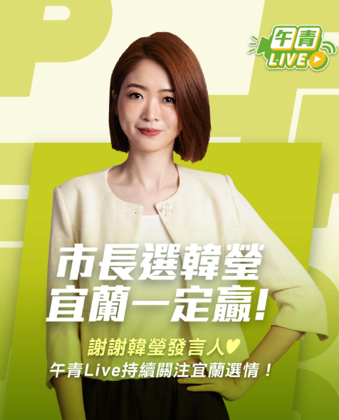 根據《TVBS新聞網》、《聯合新聞網》報導,賴清德在中常會中表示,宜蘭縣黨部執委會已於上週五通過徵召韓瑩參選宜蘭市長,韓瑩也已正式遞交辭呈。他稱讚韓瑩畢業於輔大經濟系、目前就讀台大經濟所碩士班,在發言人任內協助黨務推動與政策宣傳都表現優異。賴清德期許她運用在中央累積的經驗,發揮經濟專業與國際視野,與縣長候選人林國漳律師攜手合作,為宜蘭帶來新活力,找回民主榮光。他也希望更多優秀年輕黨員能投身基層選戰,為家鄉與國家創造創新改變。