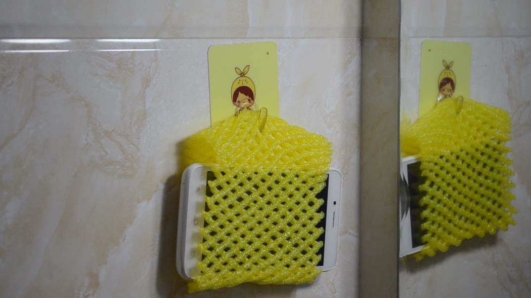 在生活中,相信有不少的人像我一樣不管洗澡還是洗臉會將手機帶進洗手間。這時候,手機如果位置放得不好就會濺到水,後果不堪設想。遇到這樣的問題,只需一個水果網套就能輕鬆解決了。先準備一個水果網套。再將水果網套橫著掛在洗手間的墻壁上面就可以了。水果網套掛在洗手間墻壁上的時候記得將水果網套中間位置掛在掛鉤上面。最後,我們將手機塞進這個水果網套裡面就可以將它懸掛在洗手間墻壁上了。既能防止手機濺水保護手機,而且還能節省洗手間裡的空間。
