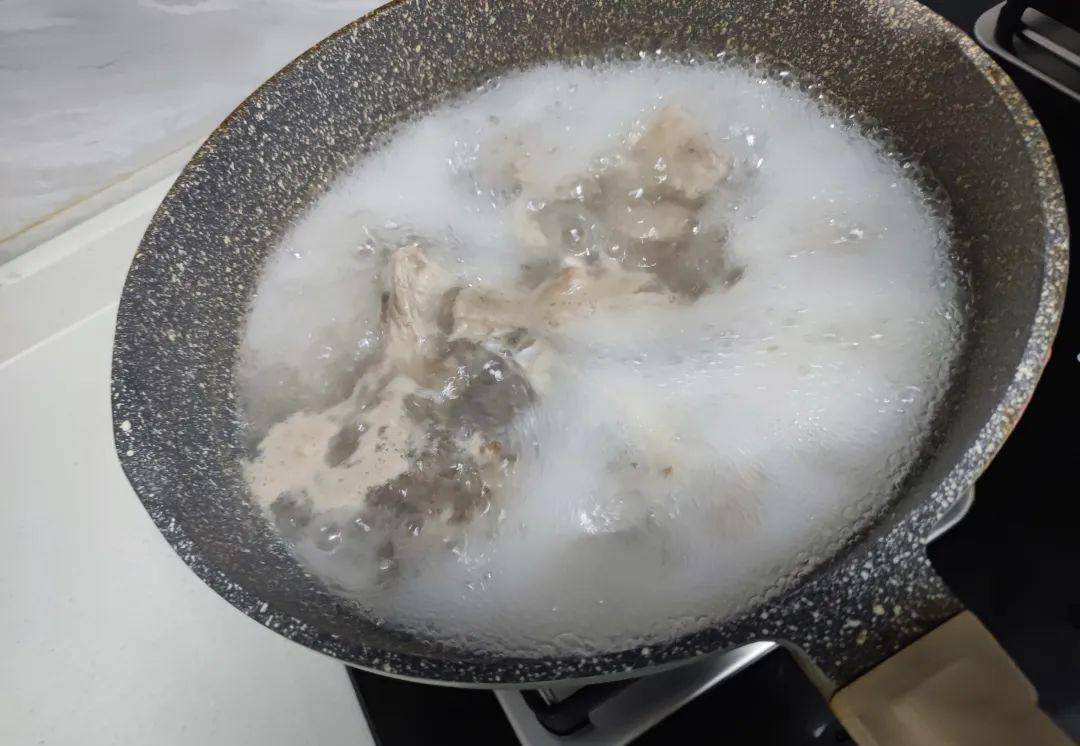 3.準備一個乾淨的鍋,鍋中的水開後,我們將洗凈後的瘦肉倒入鍋裡面,用開水燙一下,經過焯水去掉裡面的浮物;