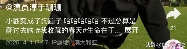 4月1號,演員淳于珊珊分享了一則日常鍛煉的畫面,並因此引發熱議,連帶他所在的位置以及身體狀態都讓人產生了遐想。