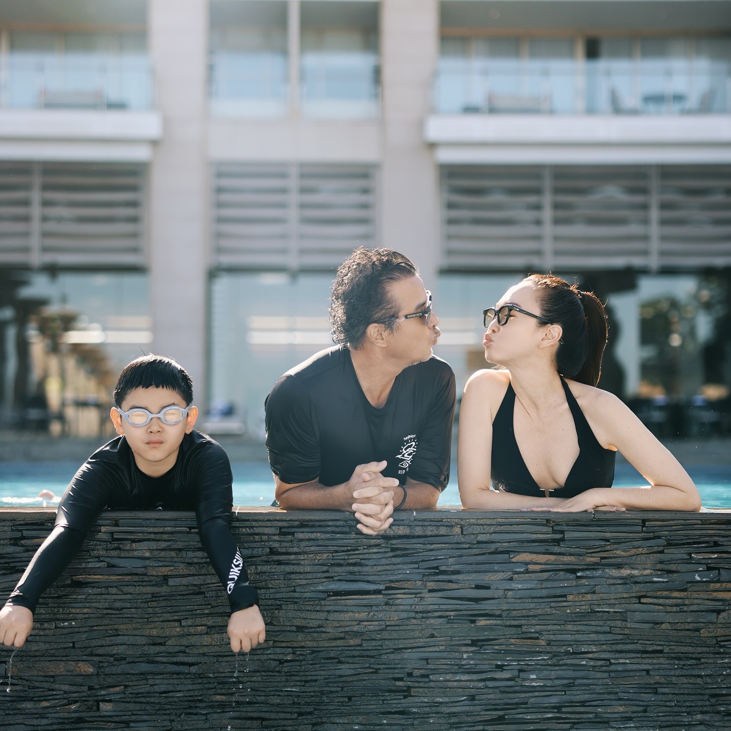 這對戲劇CP轉為人生伴侶後,攜手走過16個年頭,婚後育有一子的他們依然甜蜜如初。范文芳近期在社群平台分享度假照,一家三口的溫馨時光令粉絲羨慕不已。照片中,她以一襲黑色泳裝現身,白皙勻稱的身材完全看不出已當媽,狀態好地令人驚艷。