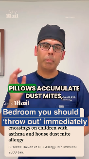 首先是使用過久的枕頭。專家指出,枕頭長期使用會累積塵螨、汗液及過敏原等物質。研究證實,枕頭是臥室中塵螨最密集的區域之一。這些微小生物雖然比鹽粒還小,卻是引發氣喘的重要原因。