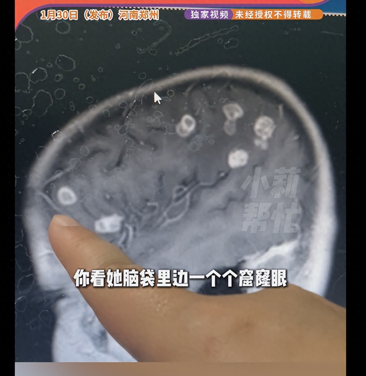 孩子的腦部影像顯示有20多個大小不一的空洞,像被什麼東西啃食過一般。