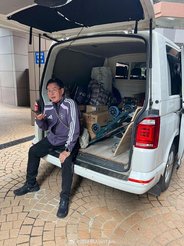 整個送貨過程中,譭詠麟完全親力親為,甚至直接坐在車尾箱休息,絲毫沒有大明星的架子。