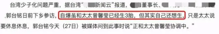 於此可見,郭台銘對這個小嬌妻還是很在意的。