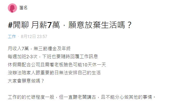 「很多工作跟你一樣沒有生活品質,而且薪水還只有一半」