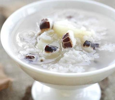 [方法]將乾百合、薏米、粳米各六十克洗淨後放鍋中煮粥,
