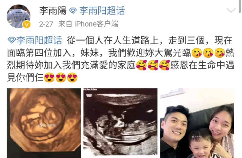 前陣子,李雨陽在微博曬照公布老婆懷上二胎的消息,言語無不透露著再次為人父的喜悅之情。