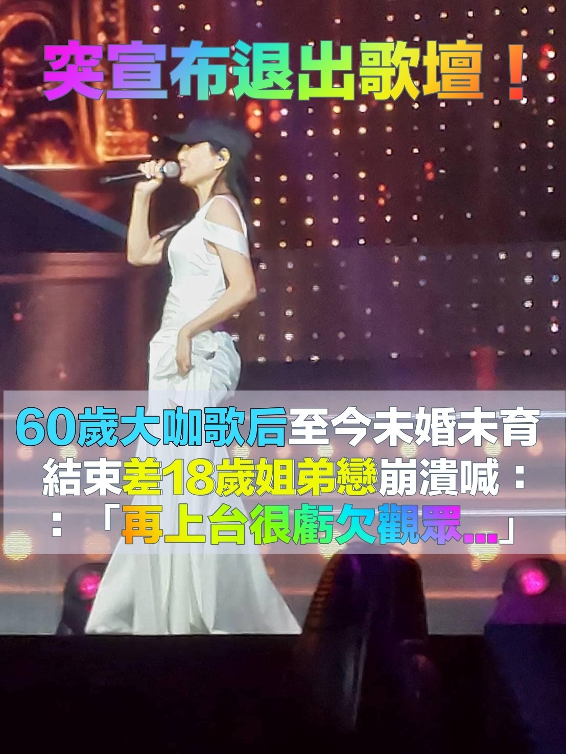小18歲姊弟戀未果!60歲資深玉女「拋震撼彈退出歌壇」 上台直言:「對不起觀眾」
