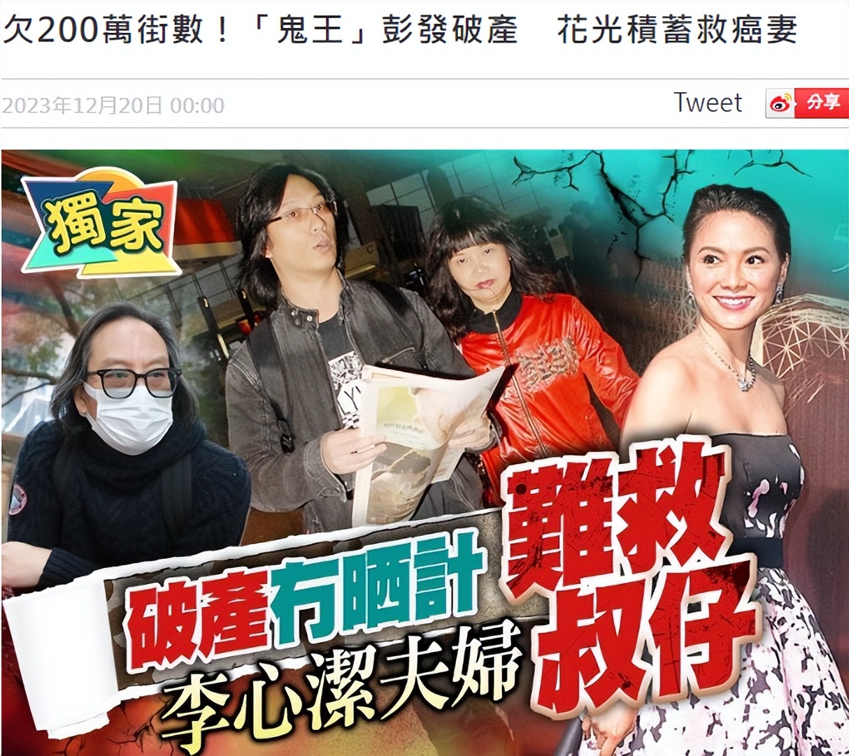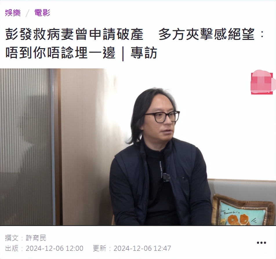 「彭氏兄弟」中的弟弟彭發,還參與《無間道》和《風雲》系列的製作,就是這樣一位優秀的導演,因為太太患上癌症,花光了所有積蓄,債台高築不得不申請破產。