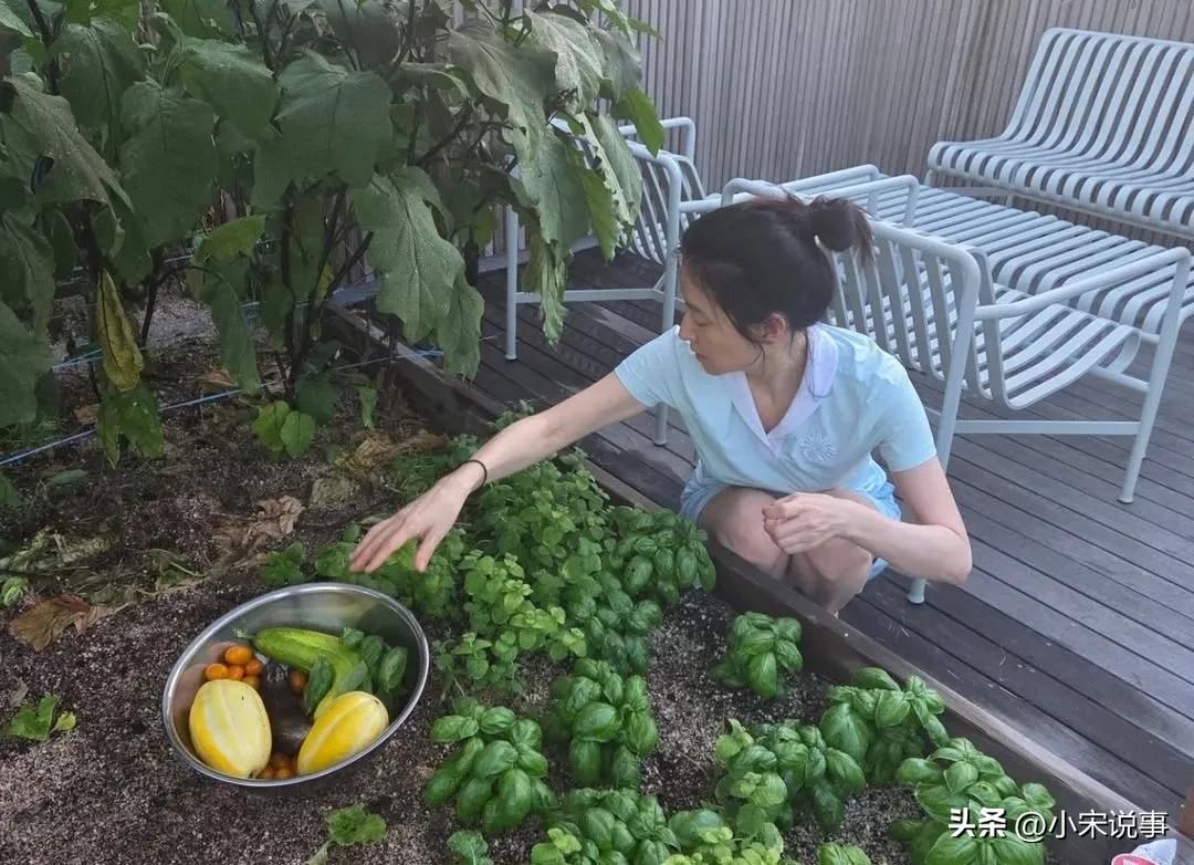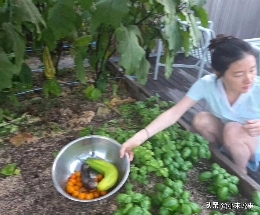 從照片中可看到,54歲的李英穿著簡單的家居服,正在自家菜田裡採摘親手種植的作物——黃瓜、南瓜、櫻桃番茄、茄子、甜瓜等都掛滿枝頭。她一手拎著菜籃,一手伸向植株,神情專注放鬆。與以往螢幕上的高貴形象形成鮮明對比!那一刻,她不是優雅的明星,而是一位平凡的妻子和母親,但依然美麗。