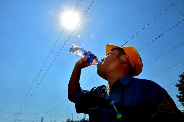高溫出汗多,身體水分和電解質會大量流失。建議每小時喝水150—200毫升,不要等口渴才喝。