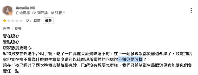 對此該店老闆娘事後澄清,當時已誠懇處理,馬上補便當給顧客,否認曾對顧客說出不好聽的言詞。而桃園市衛生局獲報後立即派員稽查,發現該店環境存在諸多問題,包括地面及牆壁不潔、病媒防治未確實執行、冷藏設備不足且結霜、食材存放管理未落實等違規情形,已要求店家限期改善,若未達標準將依《食品安全衛生管理法》開罰,處以新臺幣6萬以上、2億以下罰鍰。