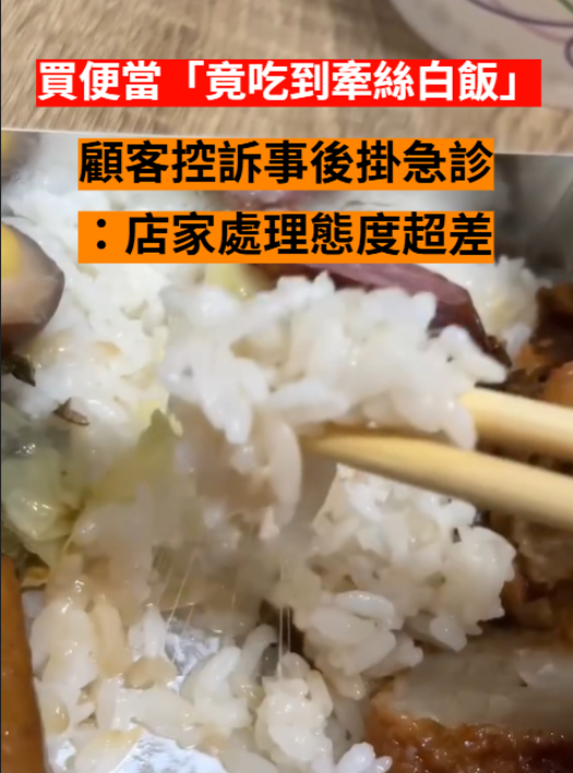 買便當「吃到黏稠牽絲白飯」事後掛急診!曝店家態度差「嗆你想怎麼處理」老闆娘喊冤了