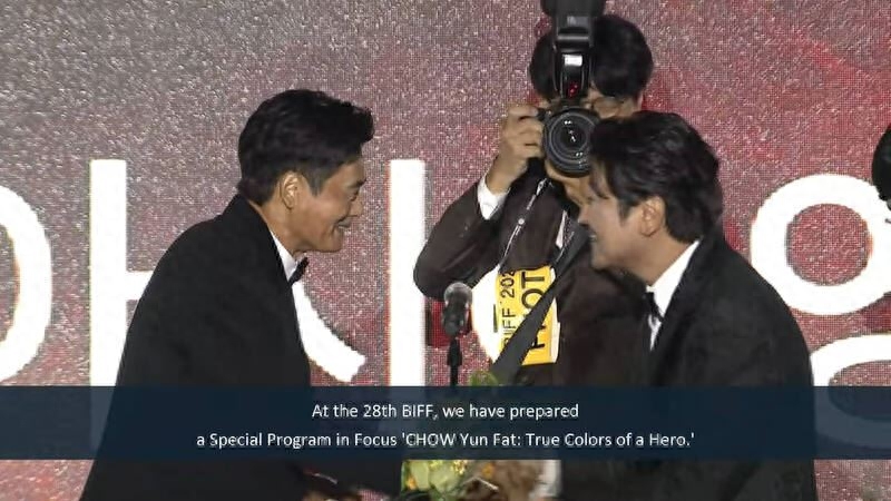 韓國影帝宋康昊頒獎給發哥,他在台上大讚發哥是「電影界永遠的大哥」。