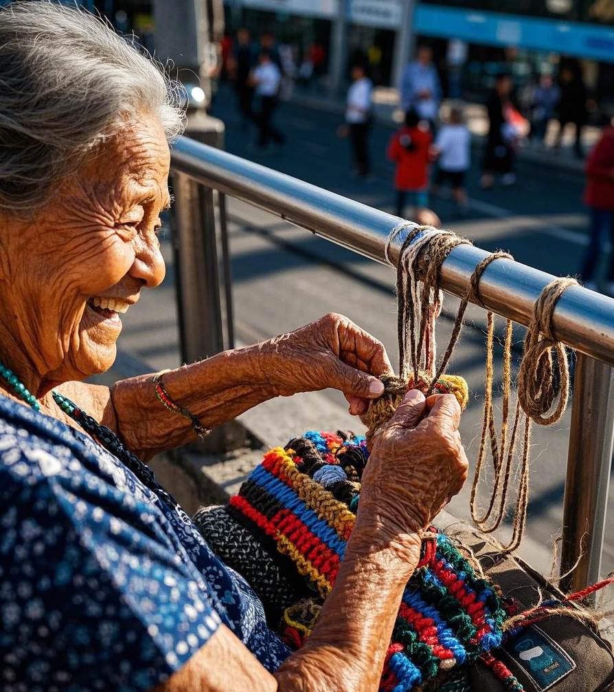 不是為了賺錢!九旬老奶奶「坐公車去天橋賣手工品」 放大一看「超鼻酸細節」讓人淚目