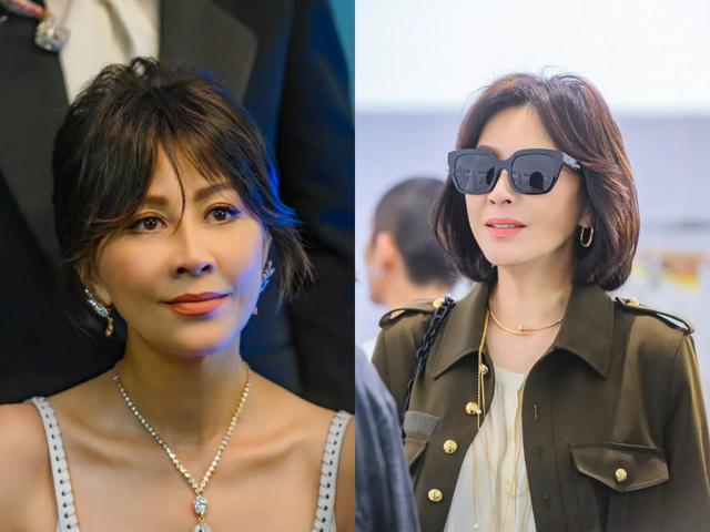 劉嘉玲之前留空氣劉海的丸子頭造型,相比中短髮造型來說,略顯滄桑,不夠精神!露出額頭的短捲髮更顯氣質!