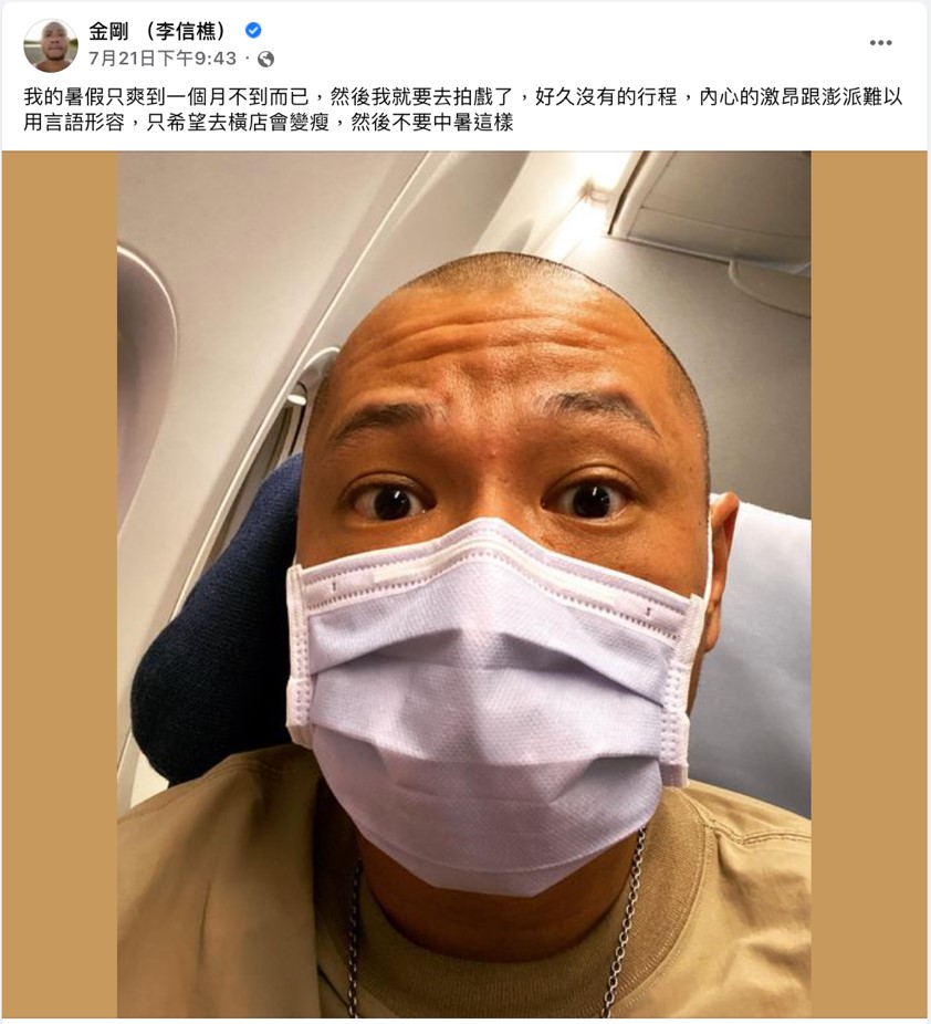 至於金剛,前陣子分手後雖然曾對外坦承,自己尚未走出情傷、還在努力調適自己的心情,但七月中時卻突然在臉書激動發文表示,「我的暑假只爽到1個月不到而已,然後我就要去拍戲了,好久沒有的行程,內心的激昂跟澎派難以用言語形容,只希望去橫店會變瘦,然後不要中暑這樣。」,許多親友粉絲見狀也都紛紛獻上祝福「祝鴻運大展」、「有戲拍太好了加油加油」、「祝福一切順利」。