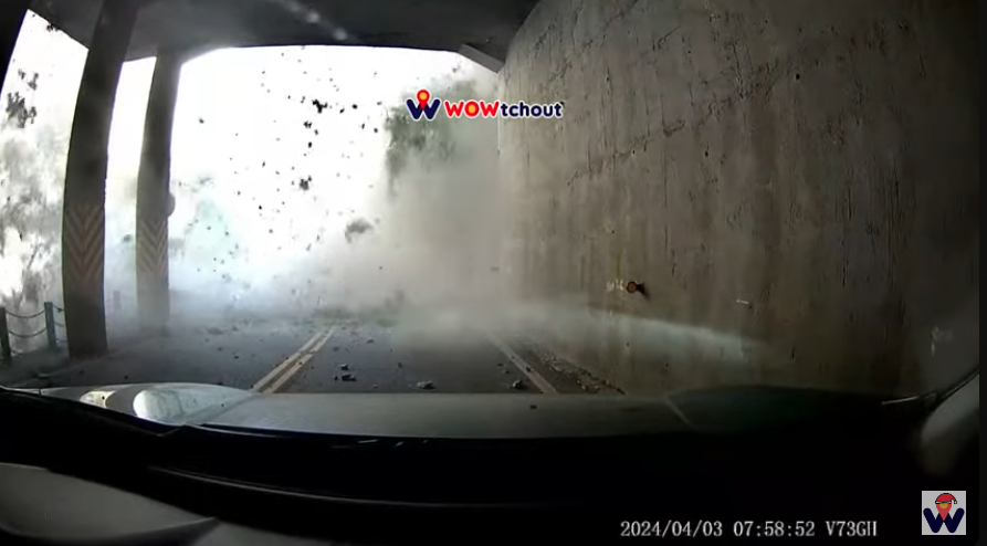 從影像中可看到當時車內人員的手機先是響起了地震警報,隨即車子上方就傳來一聲「咚」的聲響被落石砸中,駕駛驚覺不對後趕緊躲進前方明隧道,沒想到前方一陣天搖地動後就遭落石全部掩埋,嚇得駕駛與友人在車內傻住,還不斷狂喊:「不是吧」、「GG了」、「OH NO」,接著還說「我們需要救援了...」