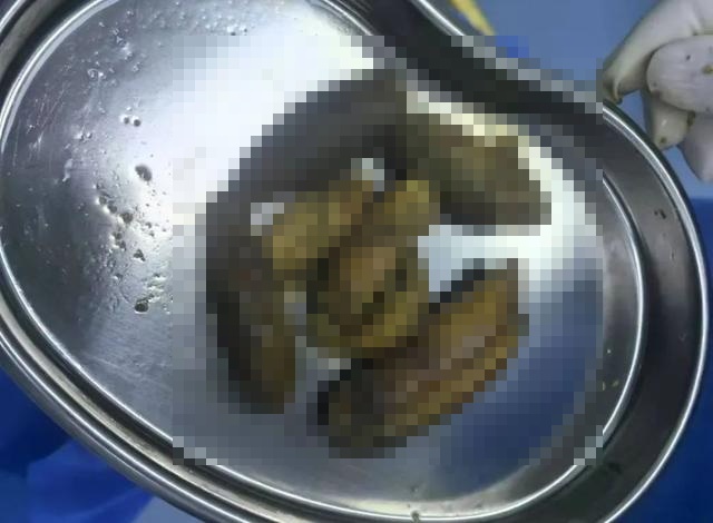 在手術過程中,徐超發現胡先生的腸道內果然有數塊大的柿餅凝結物,正是這個「罪魁禍首」導致了胡先生的腸梗阻。