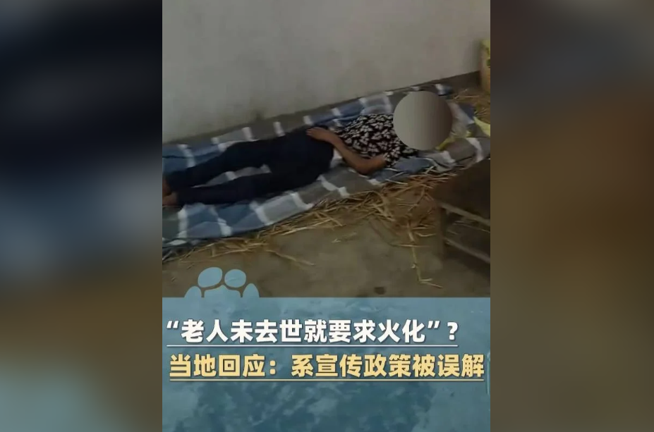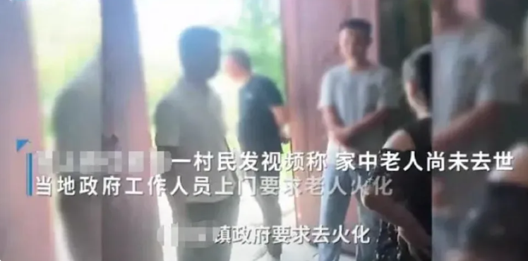事發於8月19日,一段網路瘋傳的影片中可見,幾名政府工作人員站在民宅門口,屋內的女性家屬情緒激動地大聲質問:「老人家還沒斷氣,為什麼現在就要火化?」畫面中還可見躺在地板上的老人仍在呼吸。這段影片在網路上迅速傳開,甚至衝上微博熱搜榜第六名。