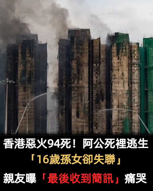 香港惡火94死!阿公死裡逃生「16歲孫女卻失聯」 親友曝「最後收到簡訊」看完痛哭