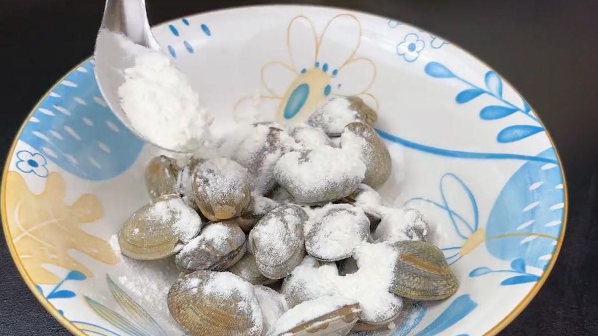 妙招二,麵粉法。將花蛤放入碗中,往裡邊加入少量的麵粉,再加入40度的溫水,花蛤最怕的就是溫水,然後再下手將麵粉攪拌溶解,浸泡十分鐘。麵粉具有很強的吸附性,並且遇水可以凝結成小顆粒,與水混合后使水溶液整體粘性增強,這樣在花蛤一呼一吸的過程中,讓花蛤身上的髒東西更容易脫落下來。