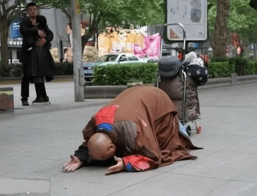 從五台山出發,嚴格遵循七步一叩首,步行3700公里,歷時八年,一步步走到拉薩的大昭寺祭拜。