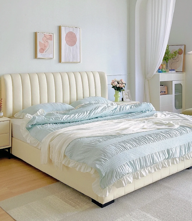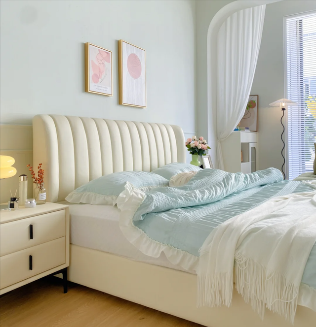 床邊放著一個小型加濕器和香薰爐,空氣中常年都瀰漫著好聞的香氣。陽台一側的窗簾沒拉緊,從縫隙中透進自然光,連空氣都顯得安靜柔和。房裡還有一個迷你閱讀角,放了一把躺椅,上面有她正在看的書,以及一個陶瓷水杯。那一角雖然不起眼,卻是整個家最舒服的角落,完全是為自己準備的獨處時光。