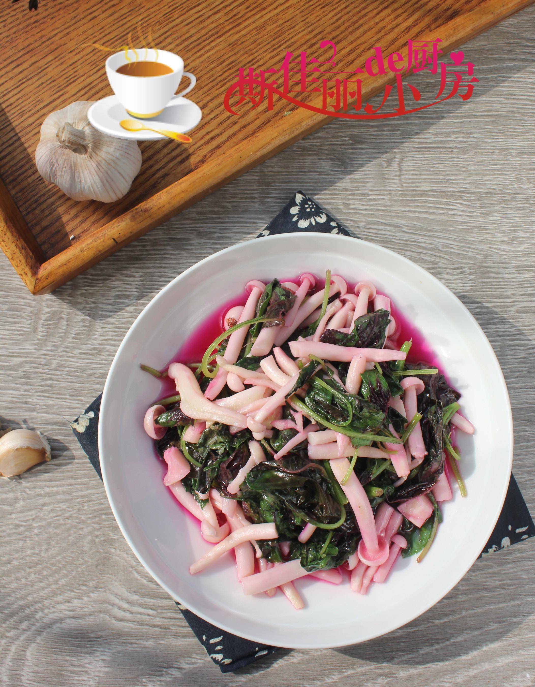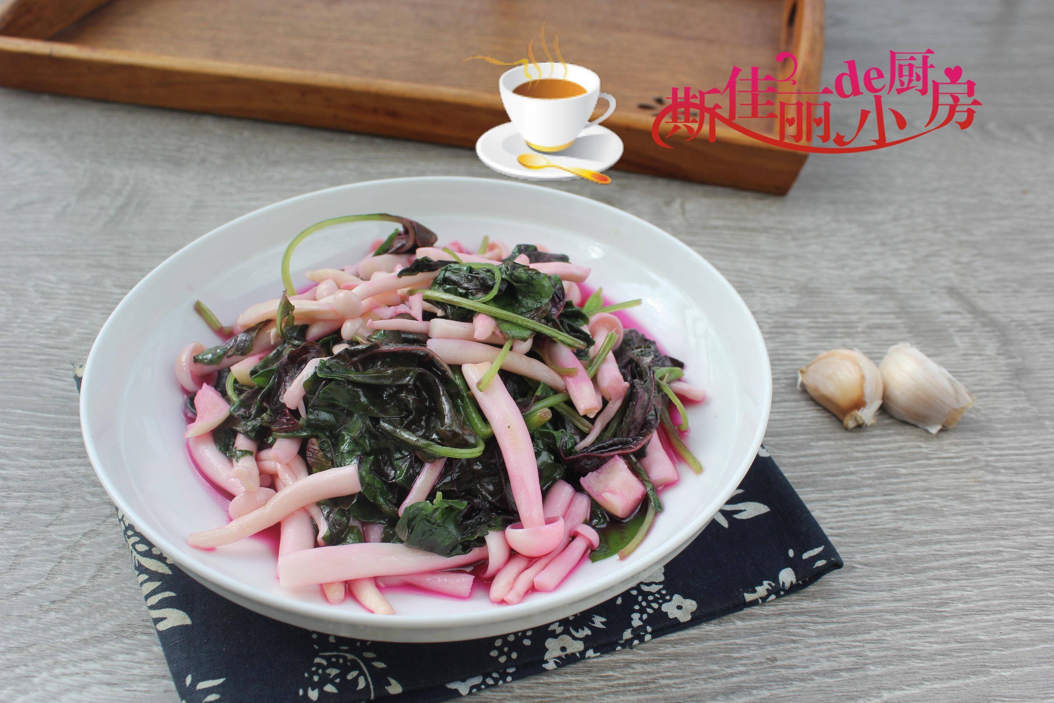 原料:鴻喜菇 1小盤 莧菜 1盤 蒜 3瓣 油鹽 適量