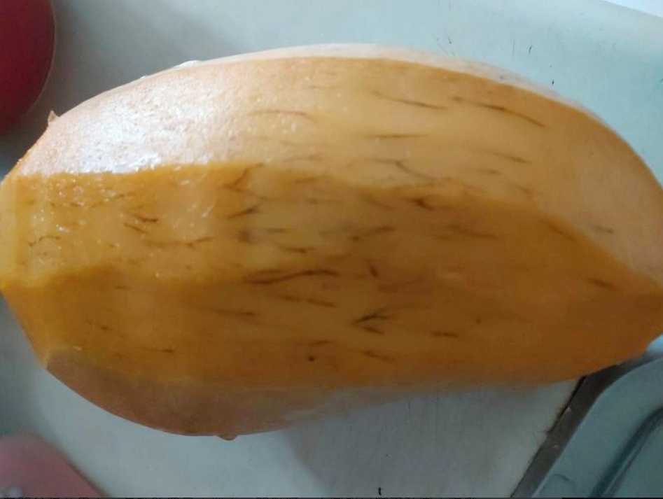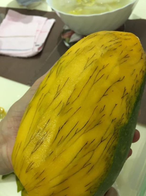 據《三立新聞網》報導,有香港網友在臉書社團「今晚煮乜餸」發文說,「求解這顆芒果,模樣就像長滿腳毛,這樣還能吃嗎?」從她曝光的照片中可以看到,她已經把大芒果削好皮,然而應該要是金黃色的果肉,竟然從內部伸出「一根根黑色的毛髮」,就像腳毛一般,讓原PO網友看了心裡毛毛的。