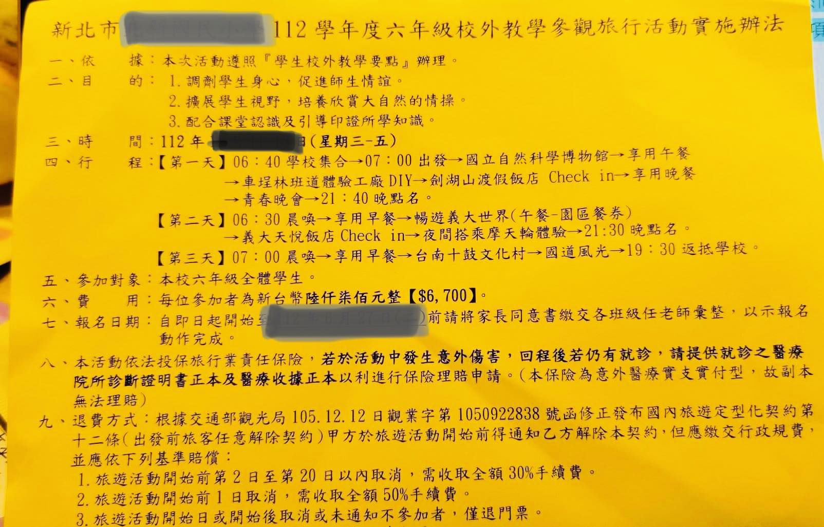 合理嗎?國小畢業旅行「收費6700」家長氣炸 怒公開行程「3天只玩4個地點」學校回應了