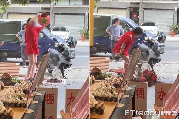 眼紅生意太好!房東身穿紅衣「爆砸飯糰店」畫面曝光 一見員警開罵:「我要告他們」